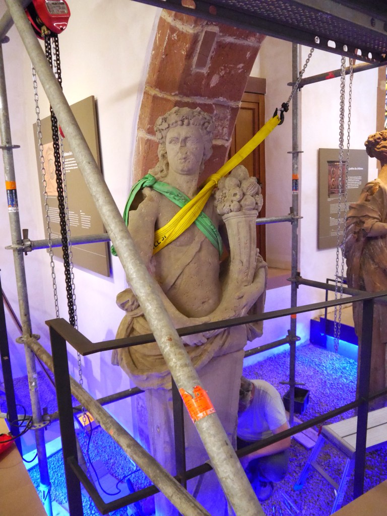 Restauration et goujonnage d’une statue en grès provenant du château disparu de Bouxwiller. En collaboration avec Célia Santi. Soclage par Version Bronze.